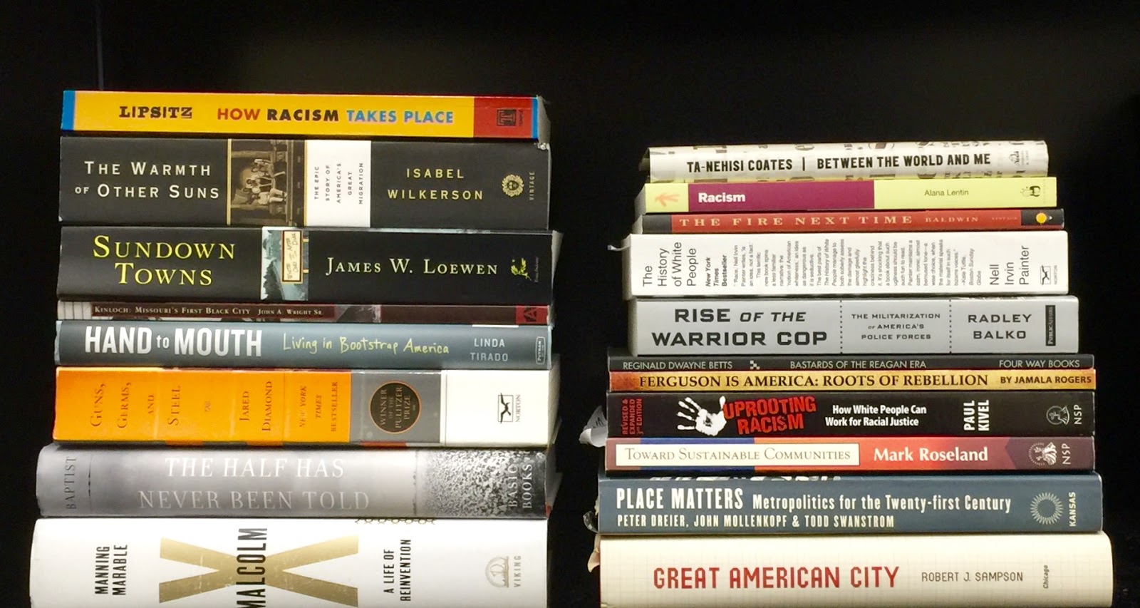Since Mike Brown was killed on August 9, 2014 I have read numerous books on racism, the school to prison pipeline, sundown towns and the great migration. I have read histories of race relations in St. Louis, numerous articles, newspaper stories and I've spent a fair amount of time on the street. Among the many things I've learned is that the history we present in schools, mainstream media, and in art institutions is not commensurate with all too many of the facts of the lived experience of many, if not most of my fellow Americans who happen to be black. Their story need not be told by me; plenty of black folks do a fine job of putting the information on the table for all of us to read. I've shared reading lists elsewhere. Left Bank Books has a good one.